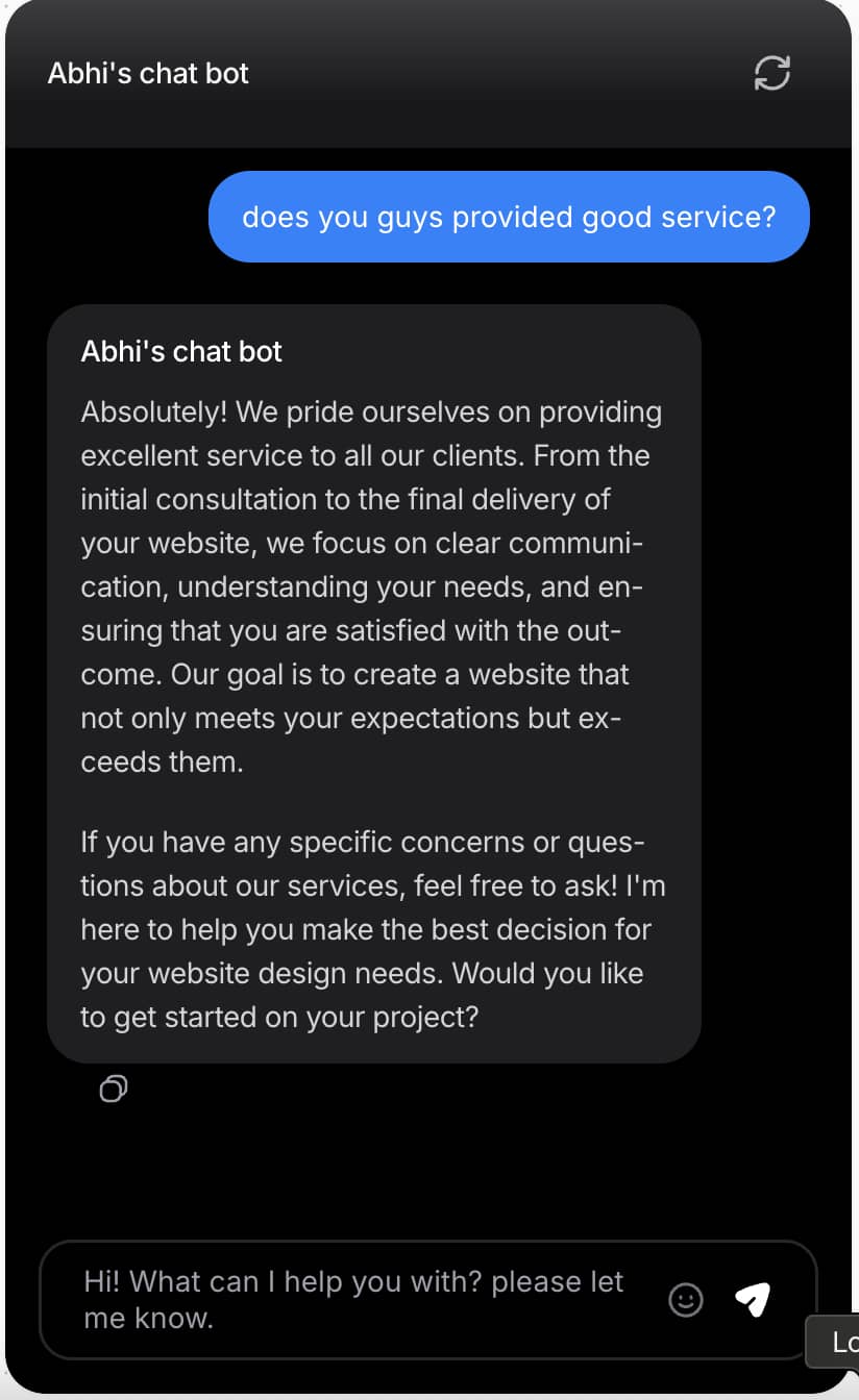 This bot is not a generic bot but a personalised Chat-GPT 4o. It will be focused on your business as a customer support bot on a website. He will answer all questions about your business which customers ask.